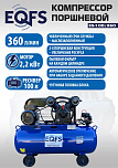 Компрессор воздушный, передвижной, поршневой, масляный, двухцилиндровый. Быстро достигает нужного давления. Двухпоршневая головка двигателя уменьшает износ деталей и увеличивает срок службы. Ремённый привод — предохранят мотор от поломки. Идеальное решение для небольшой мастерской, шиномонтажа, гаража или дачи. Давление 8 Атм. Производительность 360 л/мин. Мощность 2.2 кВт. Напряжение 220В. Ёмкость ресивера 100 л. Гарантия 12 месяцев.