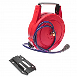 Катушка воздушная. Полиуретановый шланг давление до 300 psi. Корпус из АБС-пластика, ударопрочный. Направляющая катушка поворачивается на 180 градусов, что значительно расширяет площадь работ. Может быть зафиксирована под углом 45, 90, 135 градусов. Длина шланга 10 м. Диаметр шланга: 8 мм, наружный диаметр: 12 мм.