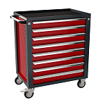 Тележка инструментальная MasterLine комплектуется 8 выдвижными ящиками. Толщина металла 0,8 мм. Цельносварная конструкция корпуса тележки. Центральный замок Euro-Lock. Шариковые направляющие полного выдвижения. Алюминиевая ручка. На боковых стенках тележки выполнена перфорация для установки навесных элементов из нашего каталога.