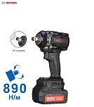 Гарантия 12 мес. Ударный. Профессиональный. До 1080Нм. 3 скорости. Реверс. Квадрат 1/2". Белый светодиод подсветки. Индикатор заряда. 20В. (2х4Ач аккумулятора РАЗМЕР БОЛЬШЕ — ПРОСЛУЖИТ ДОЛЬШЕ!), кейс и зарядное устройство в комплекте. Бесщеточный двигатель. Антивибрационная ручка. Для слесарных работ и шиномонтажа.