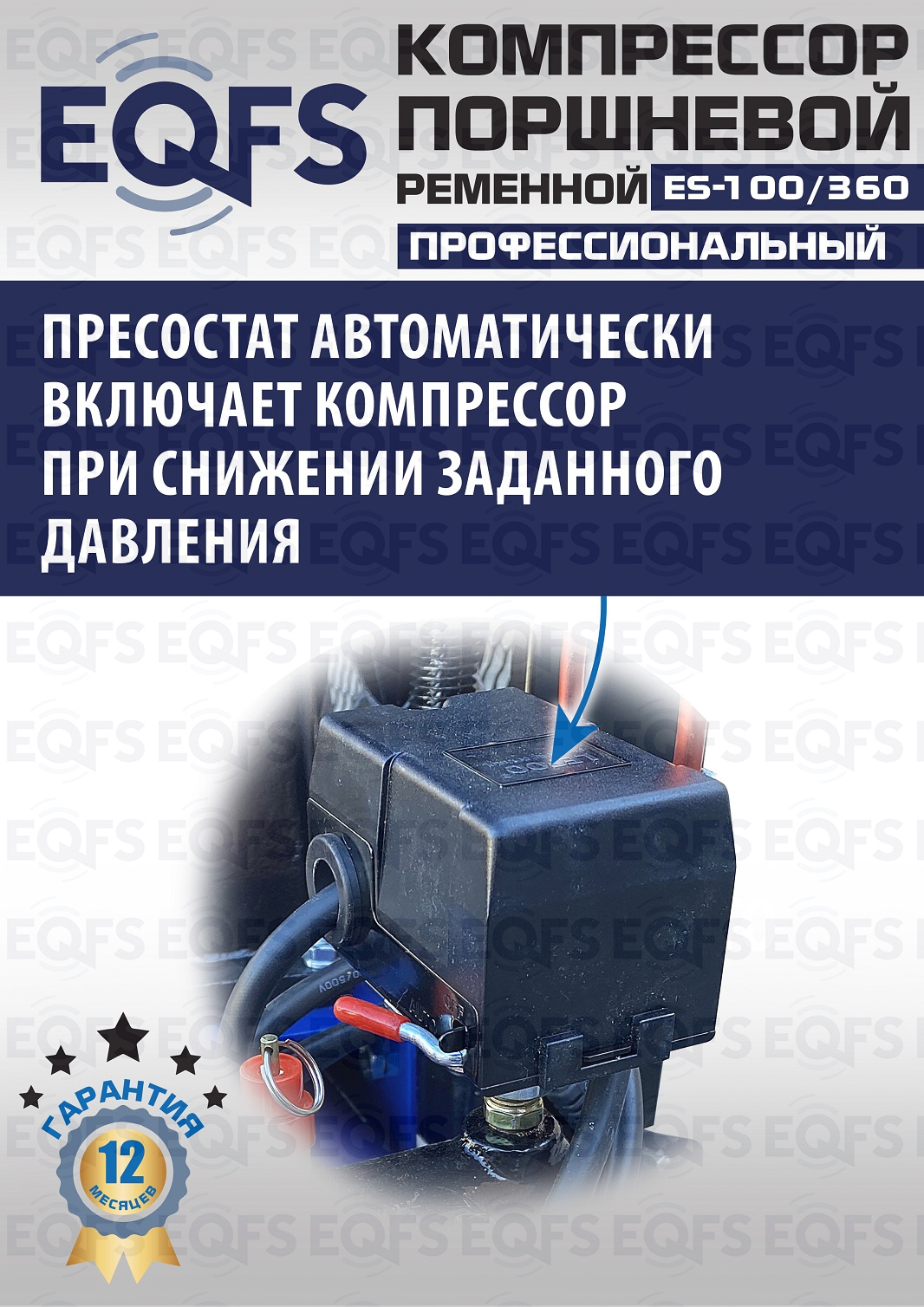 Компрессор воздушный, передвижной, поршневой, масляный, двухцилиндровый. Быстро достигает нужного давления. Двухпоршневая головка двигателя уменьшает износ деталей и увеличивает срок службы. Ремённый привод — предохранят мотор от поломки. Идеальное решение для небольшой мастерской, шиномонтажа, гаража или дачи. Давление 8 Атм. Производительность 360 л/мин. Мощность 2.2 кВт. Напряжение 220В. Ёмкость ресивера 100 л. Гарантия 12 месяцев.
