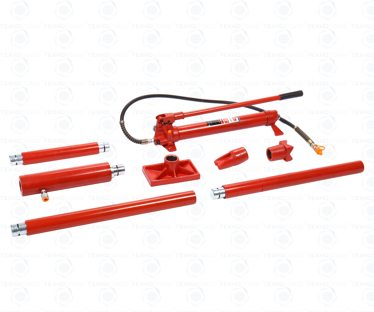 В набор входит: гидравлический насос, цилиндр, удлинители и фигурные насадки.