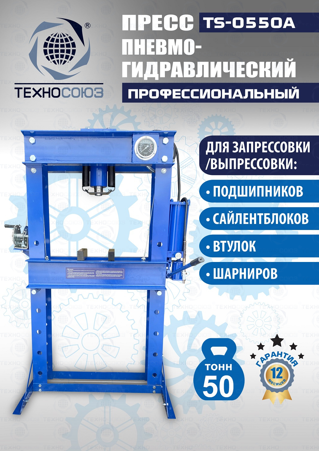 Конструктивные особенности TS-0550A Пресс 50 тонн пневмогидравлический / ручной :