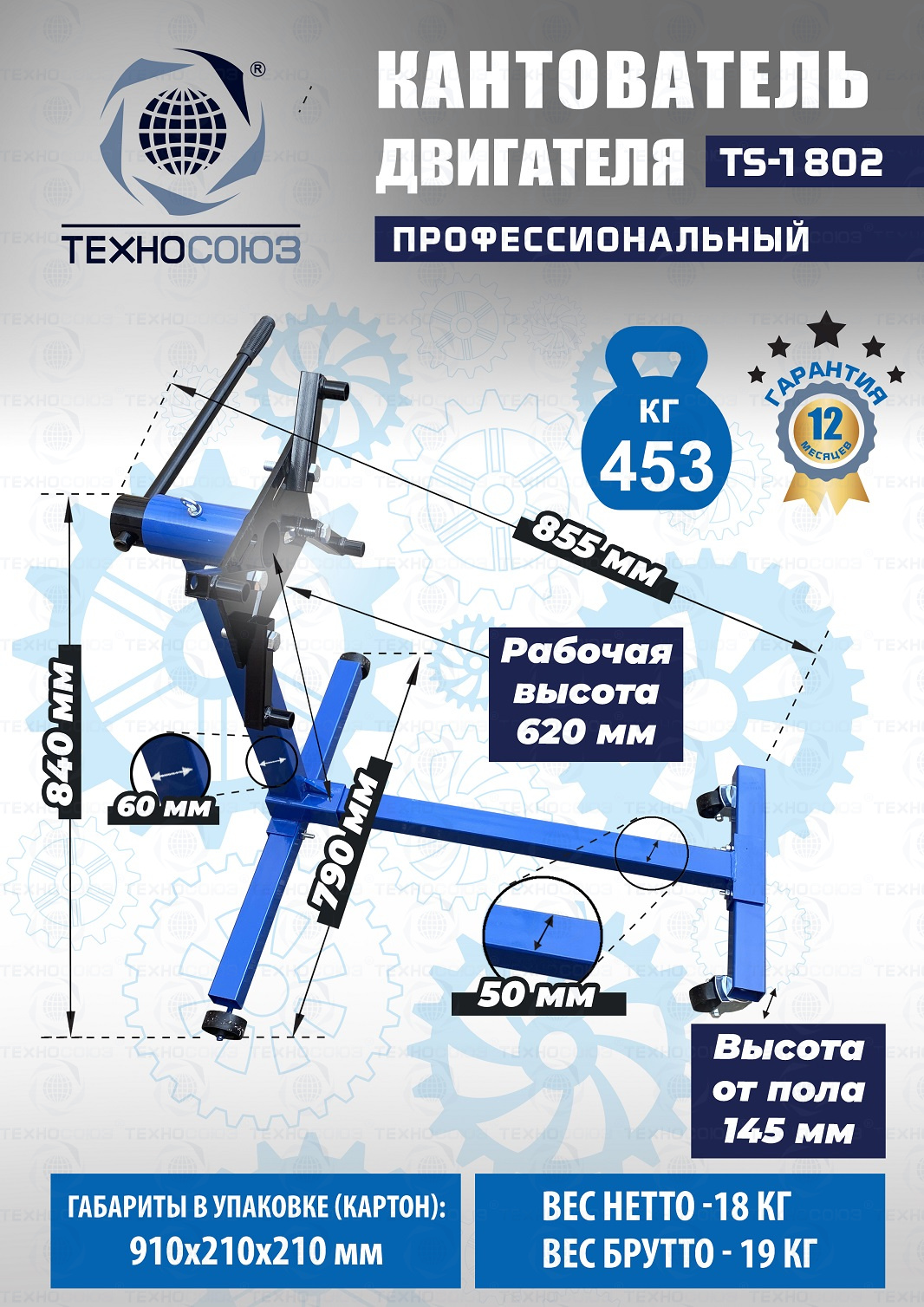 Стенд для сборки / разборки цилиндропоршневой группы 2-х и 4-х цилиндровых ДВС без навесного оборудования г/п. до 453 кг. Для марок: ВАЗ и ГАЗ (легковые), Kia Rio, Hyundai Solaris, Renault Logan, Mazda 3, Skoda Rapid, VW Polo, Ford Focus, Daewoo Nexia и Matiz, Opel Corsa и Astra с целью проведения работ по его диагностике и ремонту, а также для транспортировки внутри помещения. Стенд кантователь ДВС оснащен Т - образной рамой с поперечной и 4-мя колесами.